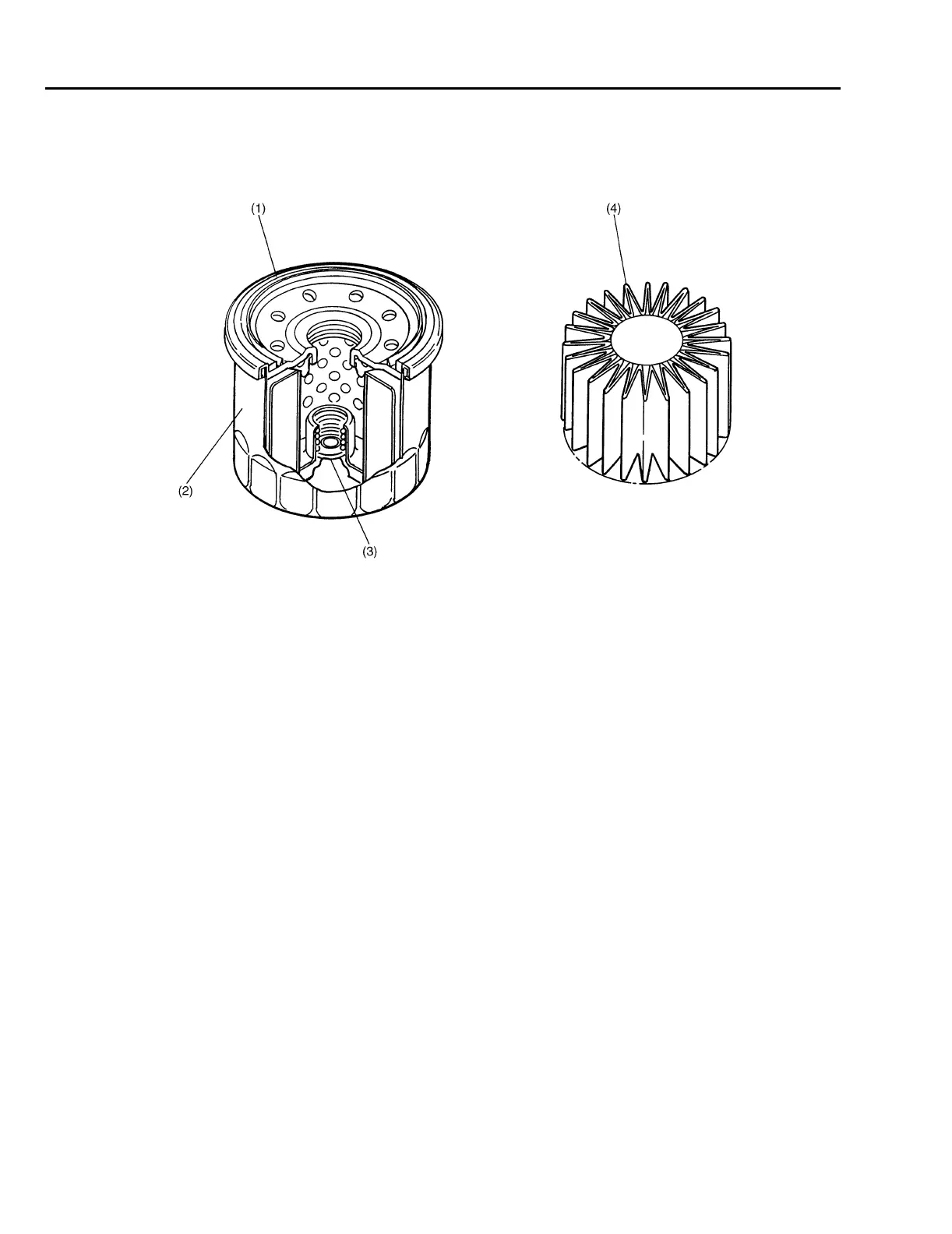 The oil filter is a full-flow filtering, cartridge type that utilizes a paper element. It also has a built-in