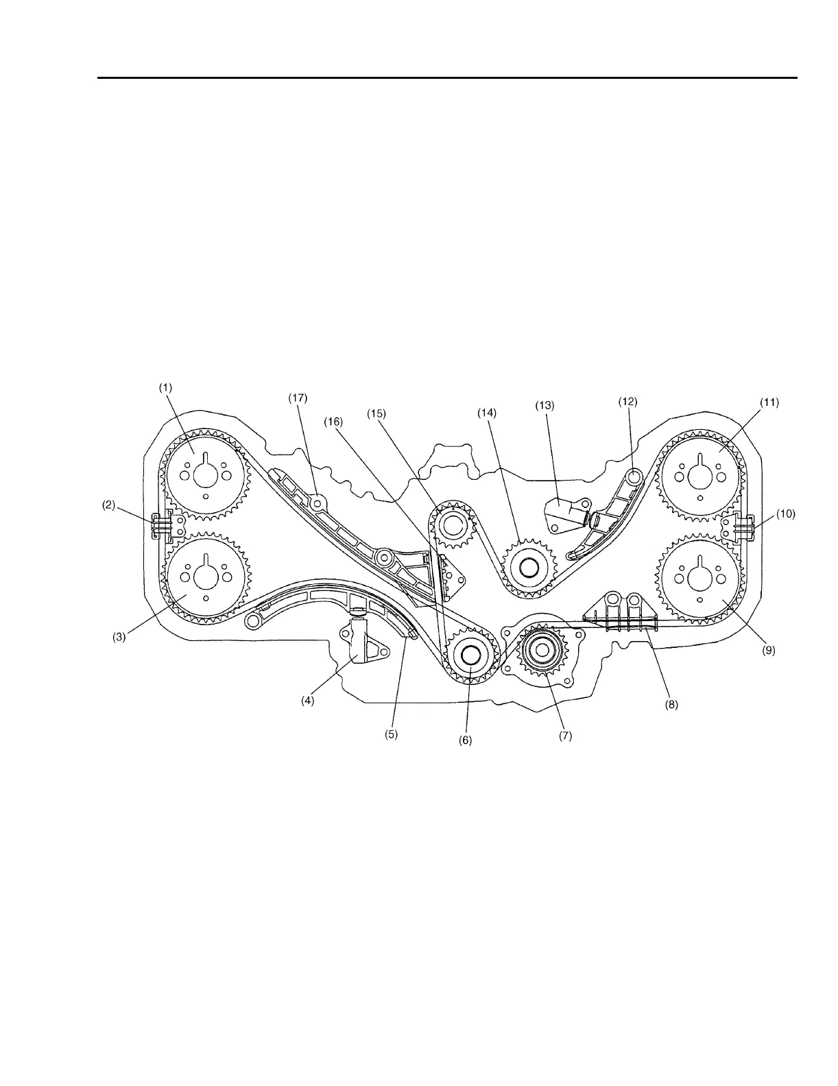 (2) Chain guide RH No.1 (8) Chain guide LH No.2 (14) Upper idler sprocket