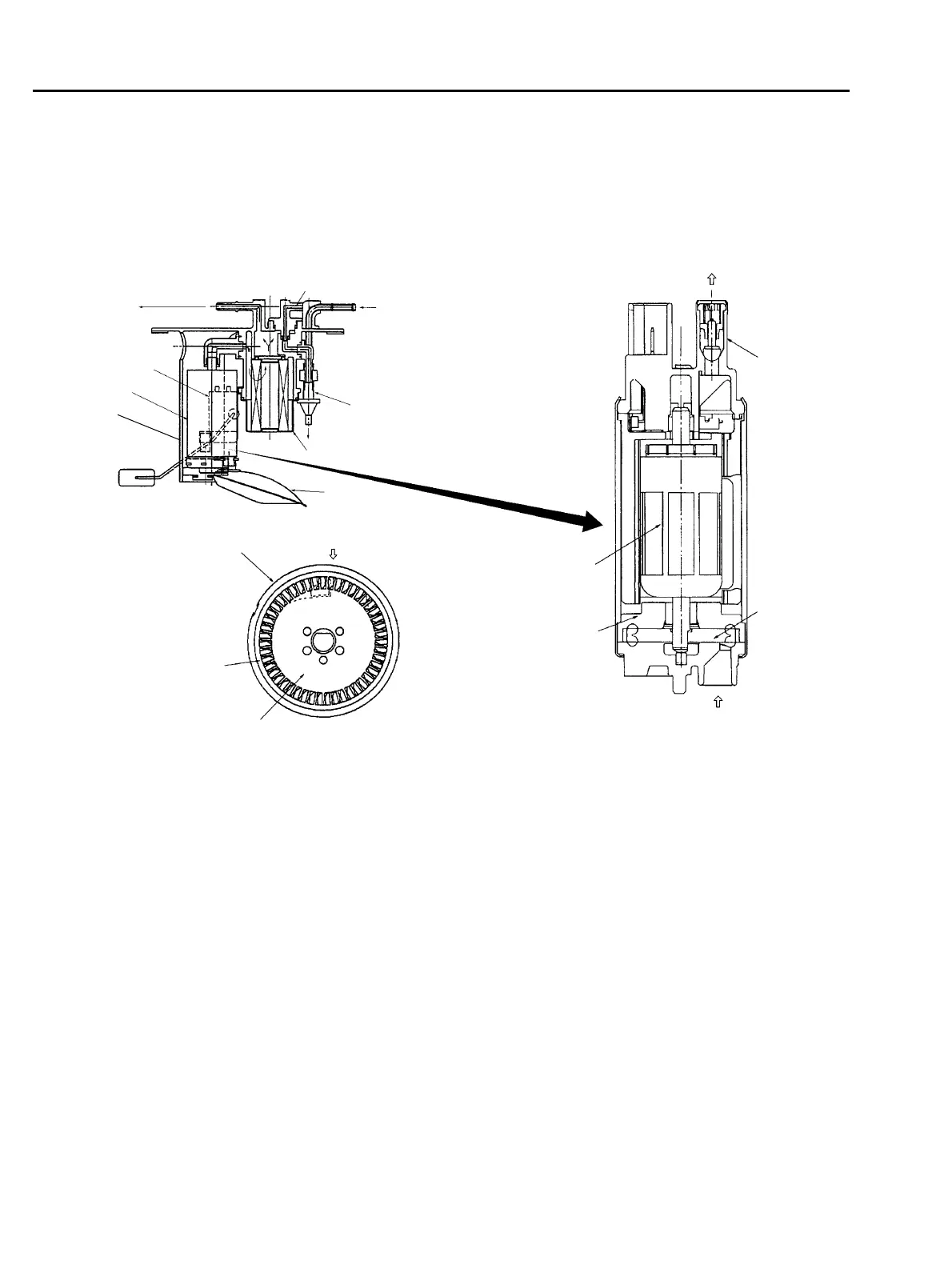 The fuel pump consists of a motor, impeller, pump casing, pump cover, check valve and filter. It is