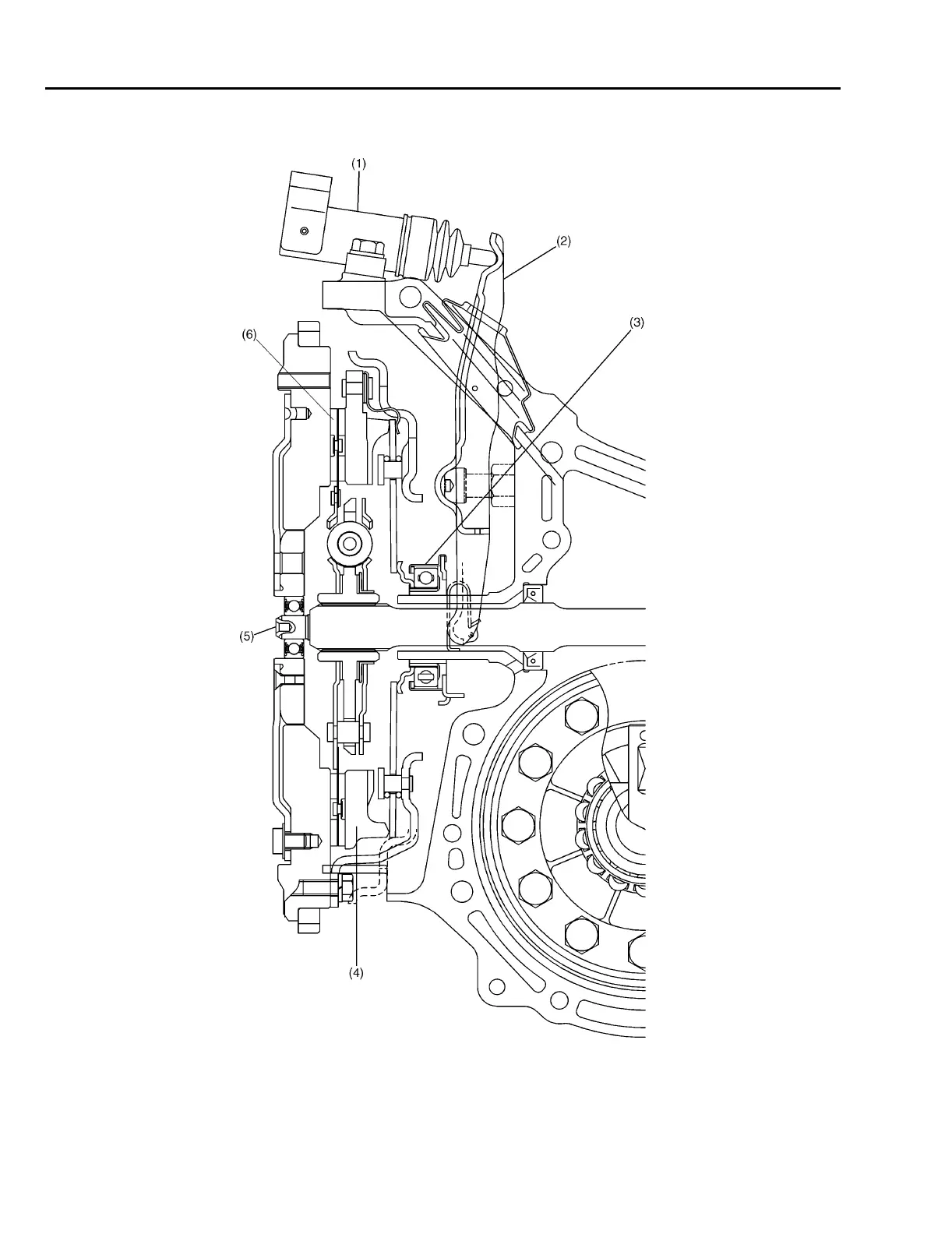 (2) Clutch release lever (5) Transmission main shaft