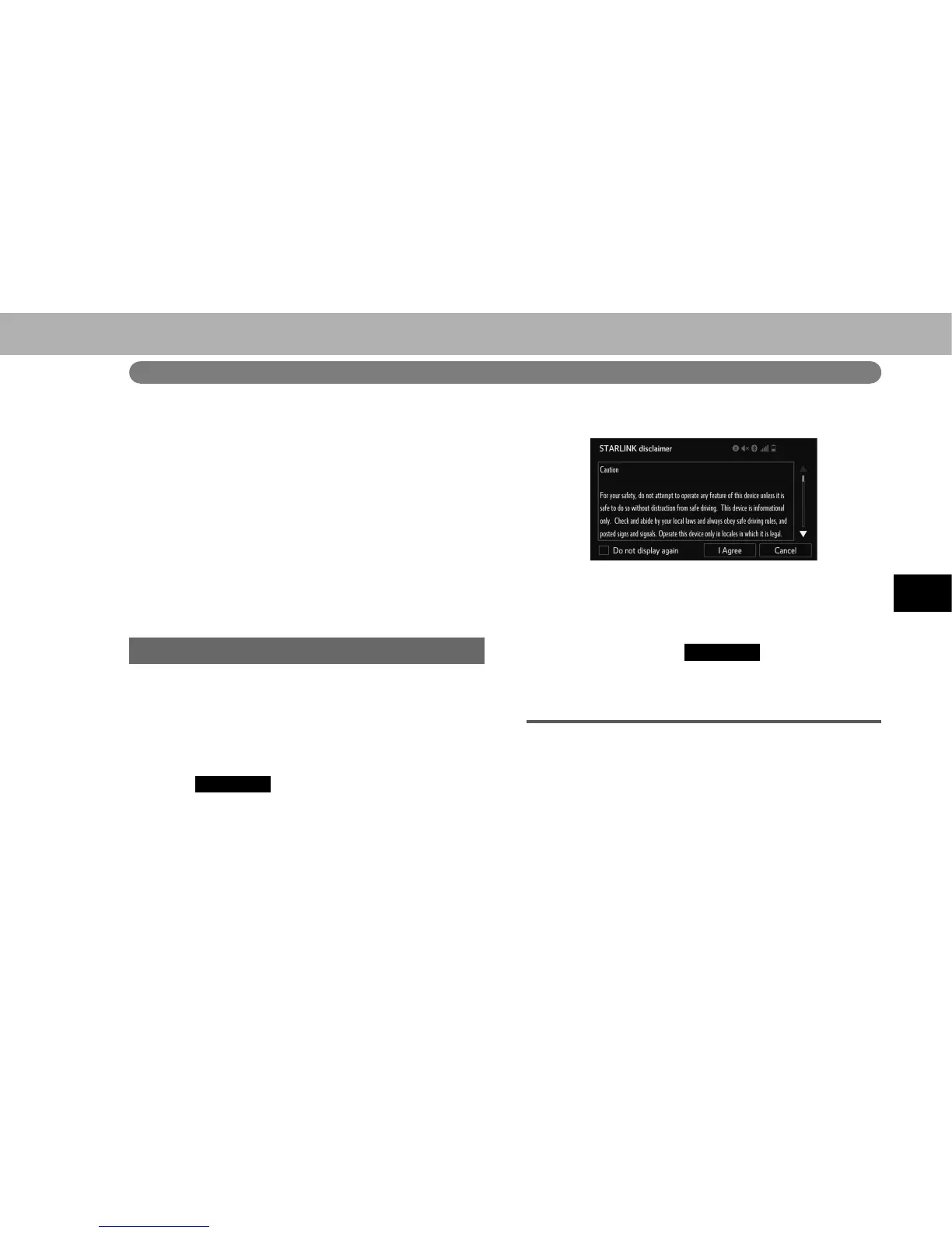 O When using the STARLINK function, a disclaimer screen will be