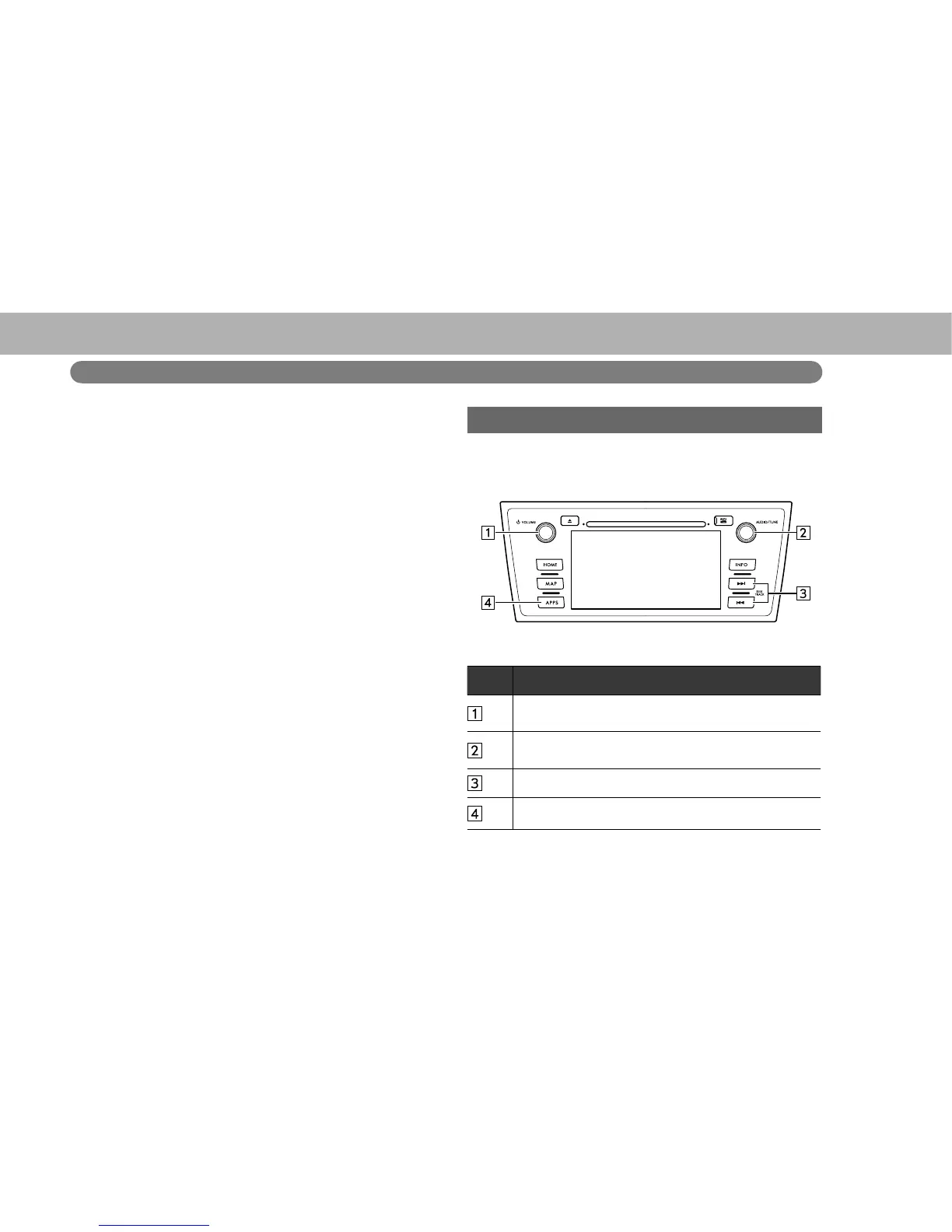 Press to turn the audio system on/off.
