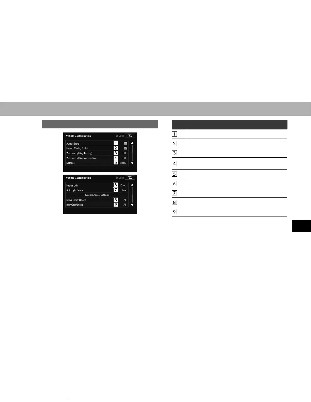 Select to change the rear gate unlock setting.