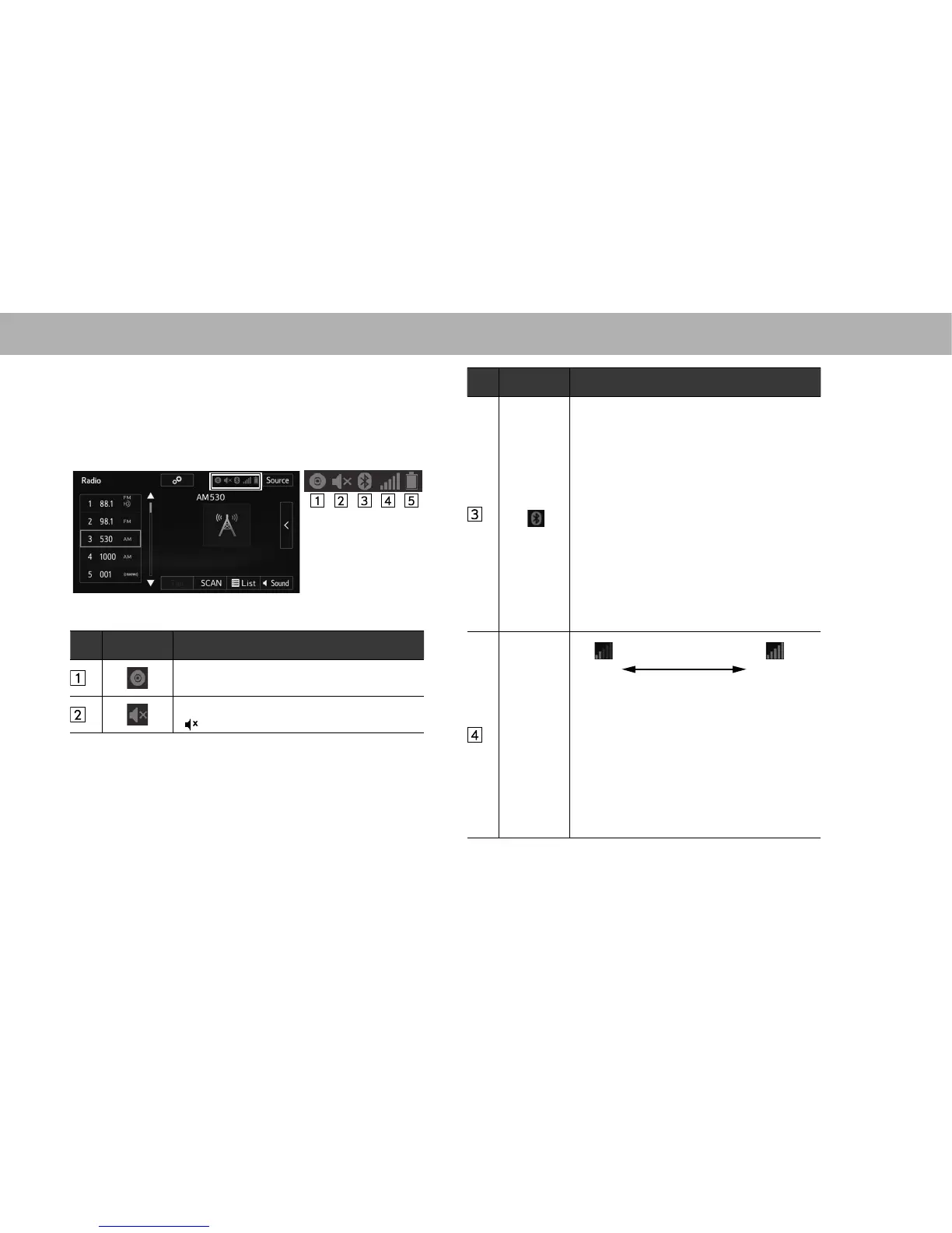 The status of the Bluetooth connection and so on is