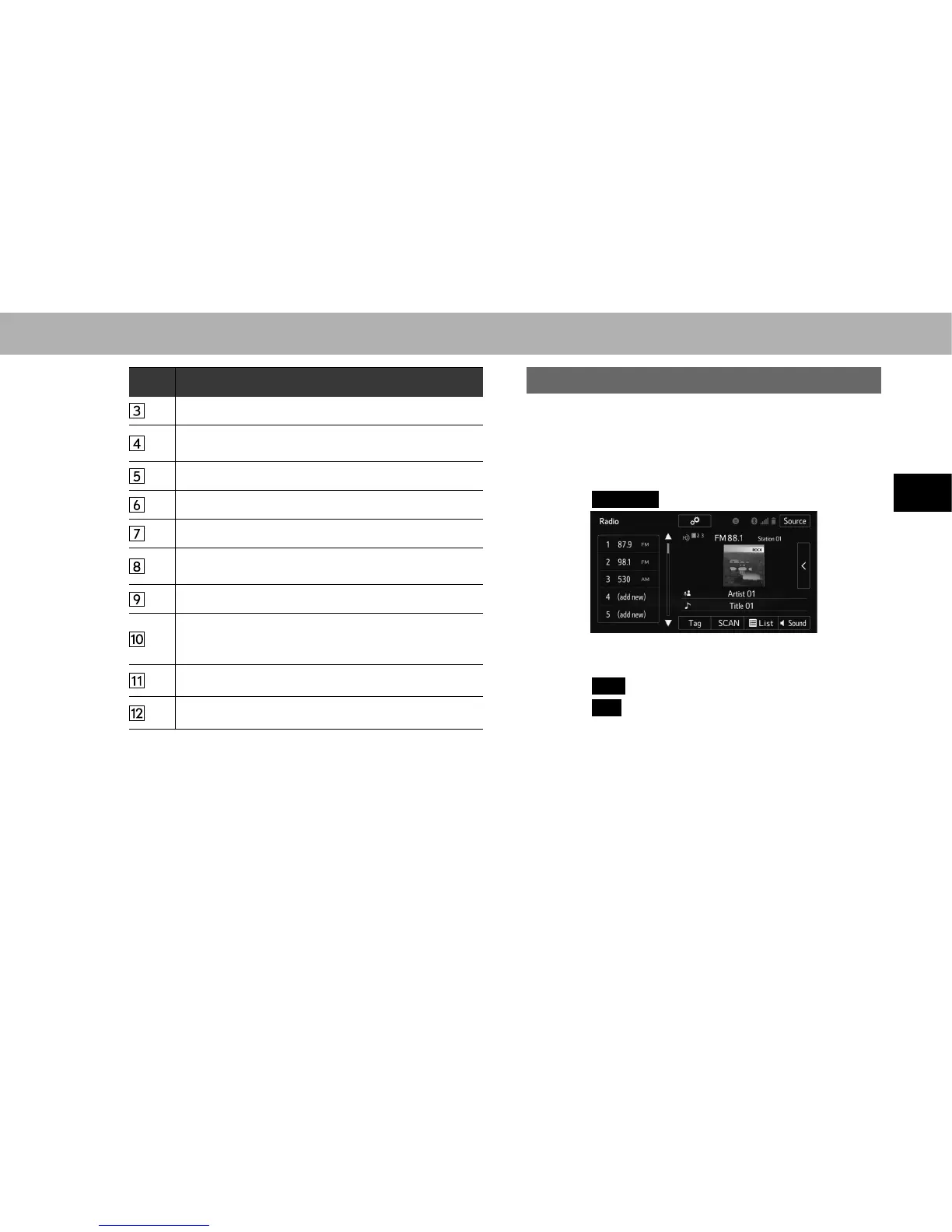 O The number of preset radio stations displayed on the screen can