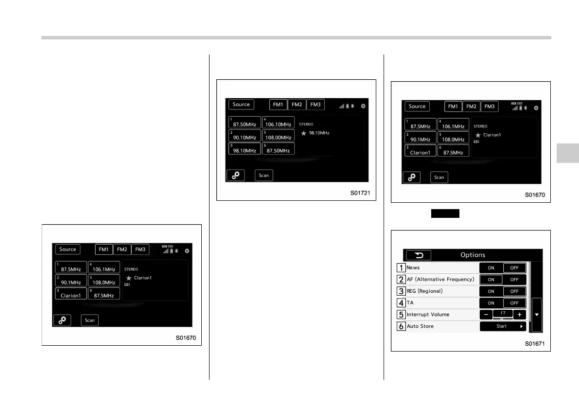 Options screen (FM radio)