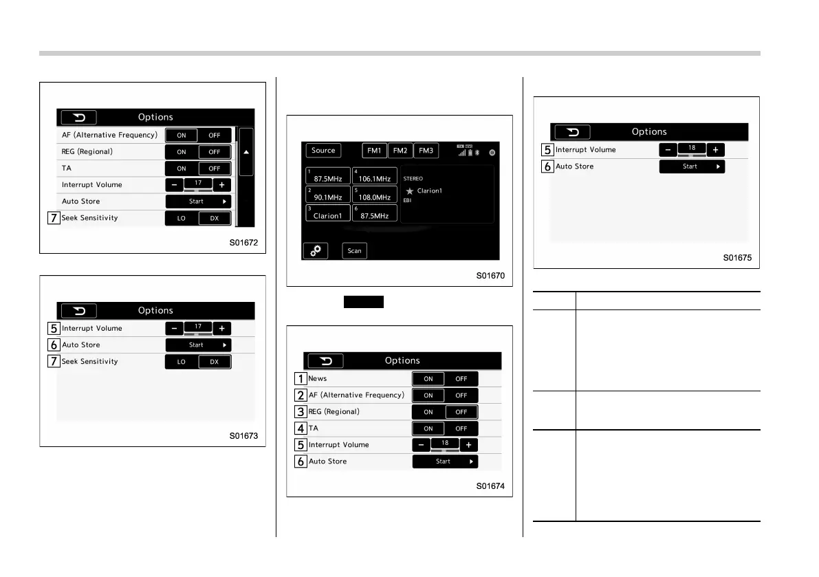 Options screen (FM radio)