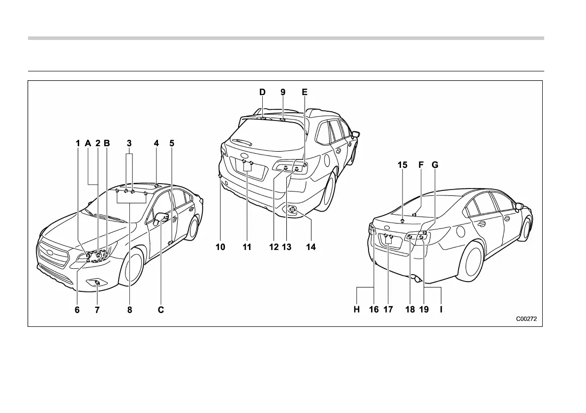 Lights from A to G are the LED (Light Emitting Diode) type. We recommend that you consult your SUBARU dealer for
