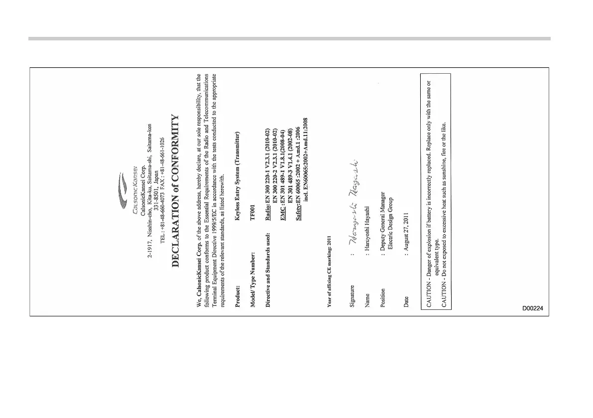 Supplement/Declaration of conformity in accordance with the radio and telecommunications terminal equipment directive 1999/5/EC