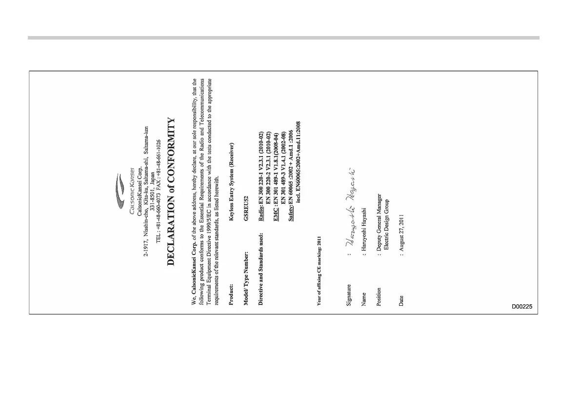Supplement/Declaration of conformity in accordance with the radio and telecommunications terminal equipment directive 1999/5/EC
