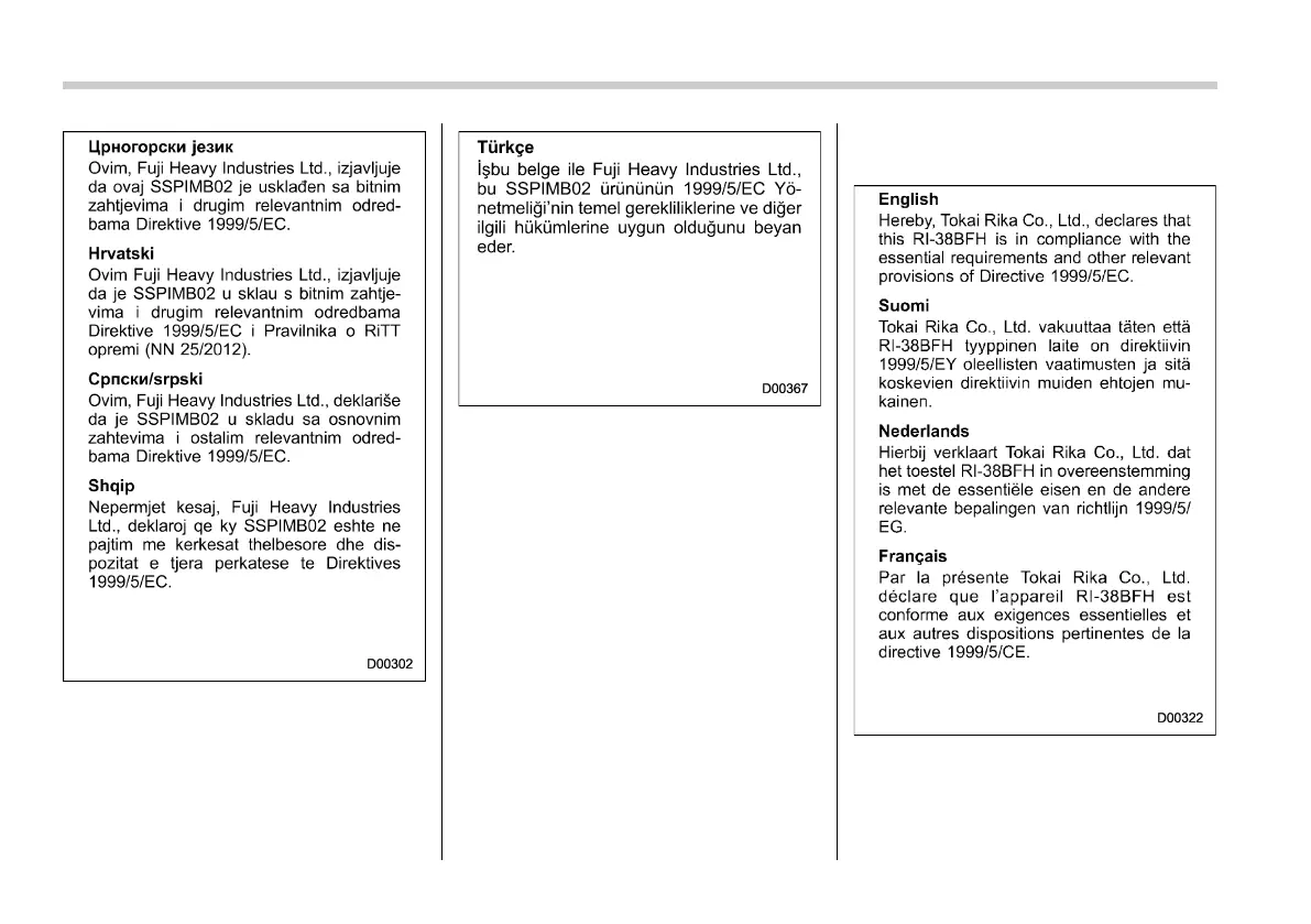 Supplement/Declaration of conformity in accordance with the radio and telecommunications terminal equipment directive 1999/5/EC