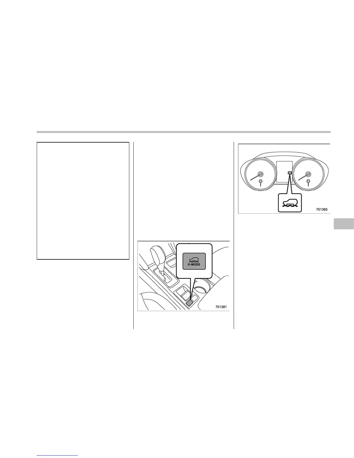 Starting and operating/X–mode (Outback CVT models)