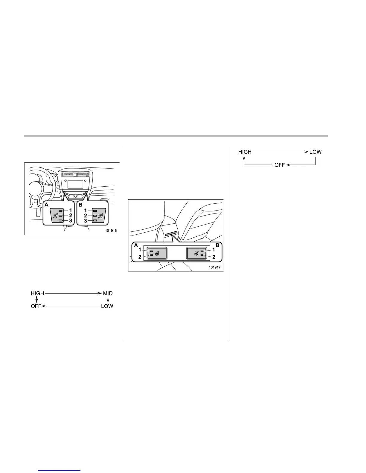 mode indicator on the front seat heater