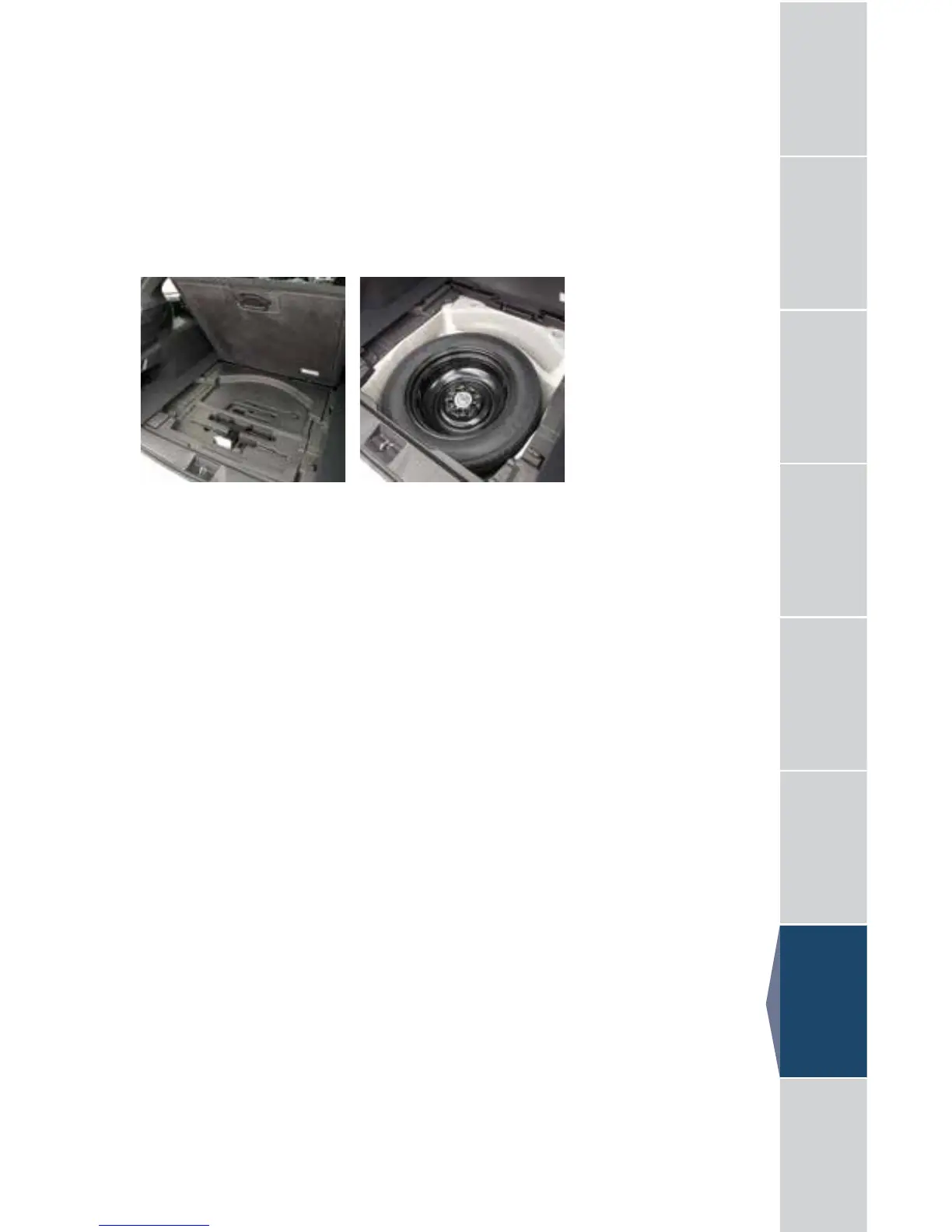 spare tire, located in the trunk or cargo area. Raise the center lid and remove the