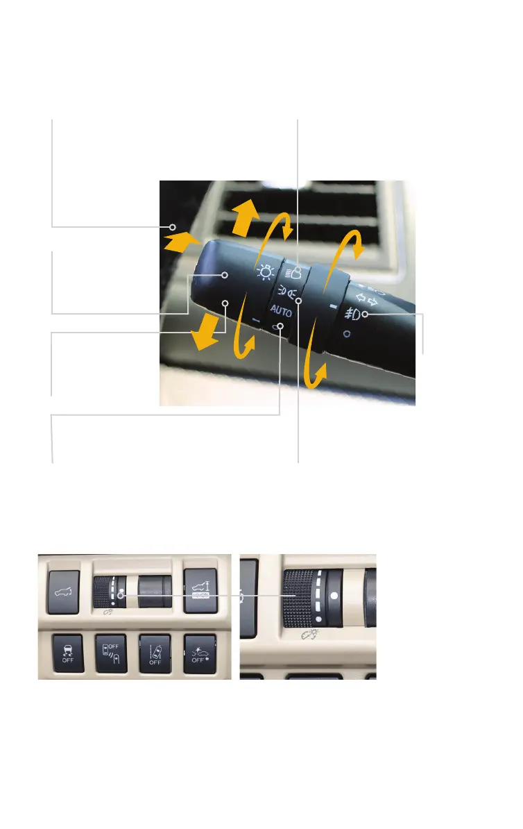 While the light switch is on, rotate the dial downward to dim the instrument panel illumination.