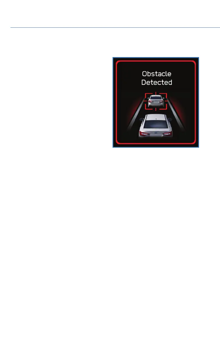 stopped vehicle or other obstacle by reducing engine power. Warnings are displayed in the