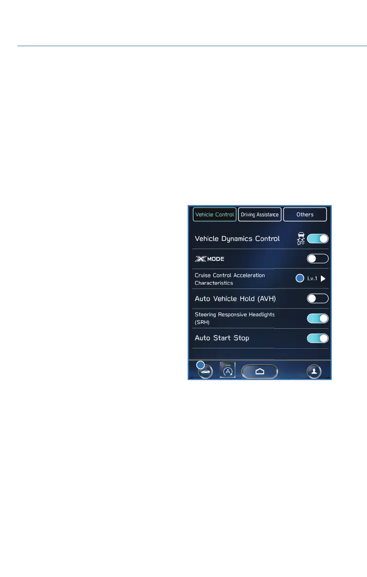 “Settings”, then “Car” or select the “Car Settings” icon to adjust a number of EyeSight