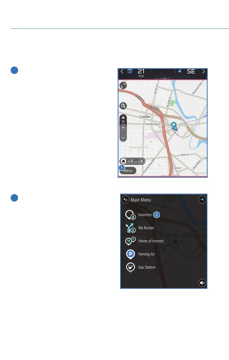 The registered points can be set as a destination. To save a location from the Map screen: