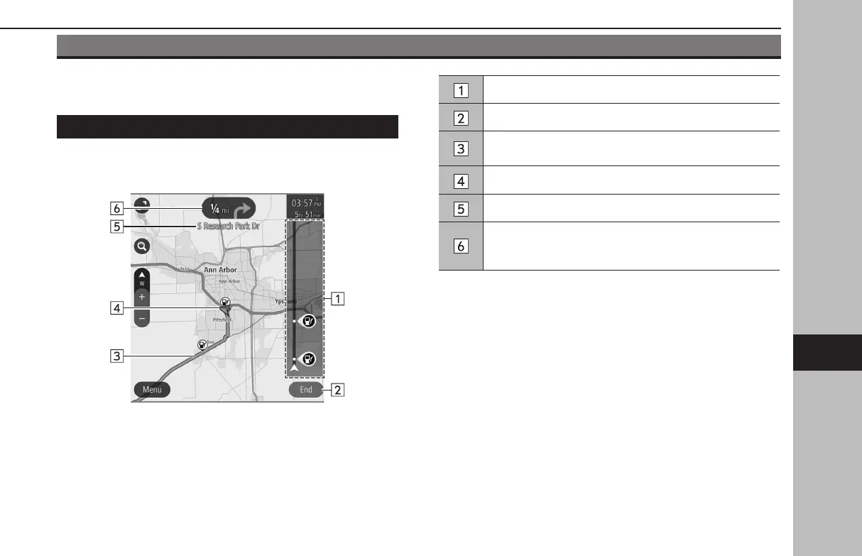 Select to display the current route menu pop-up. (→P. 196)