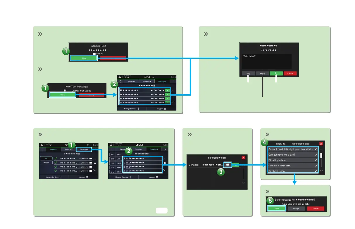 Incoming text screen is displayed. Message screen is displayed.
