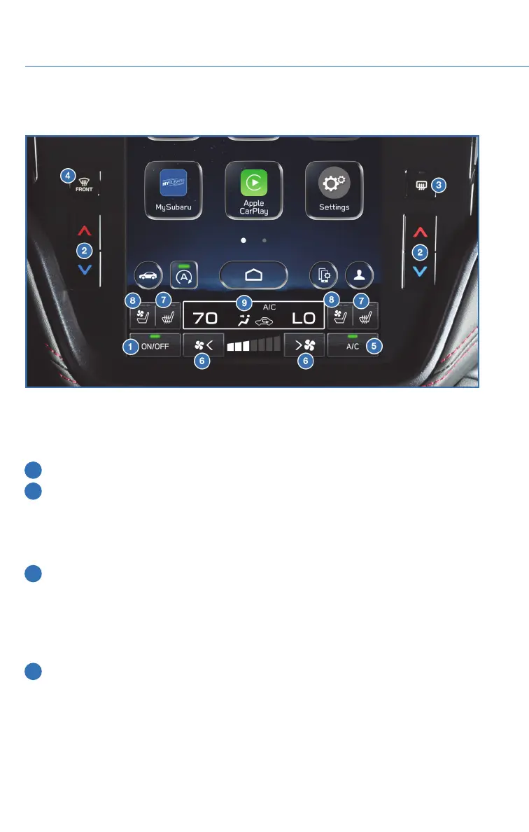 1 Climate Control On/Off Button: This button turns the climate control on and off.