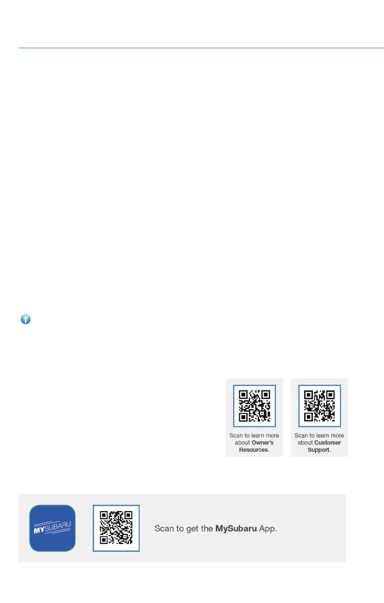 the “Owner’s Resources” in the following section or contact your Subaru Retailer.