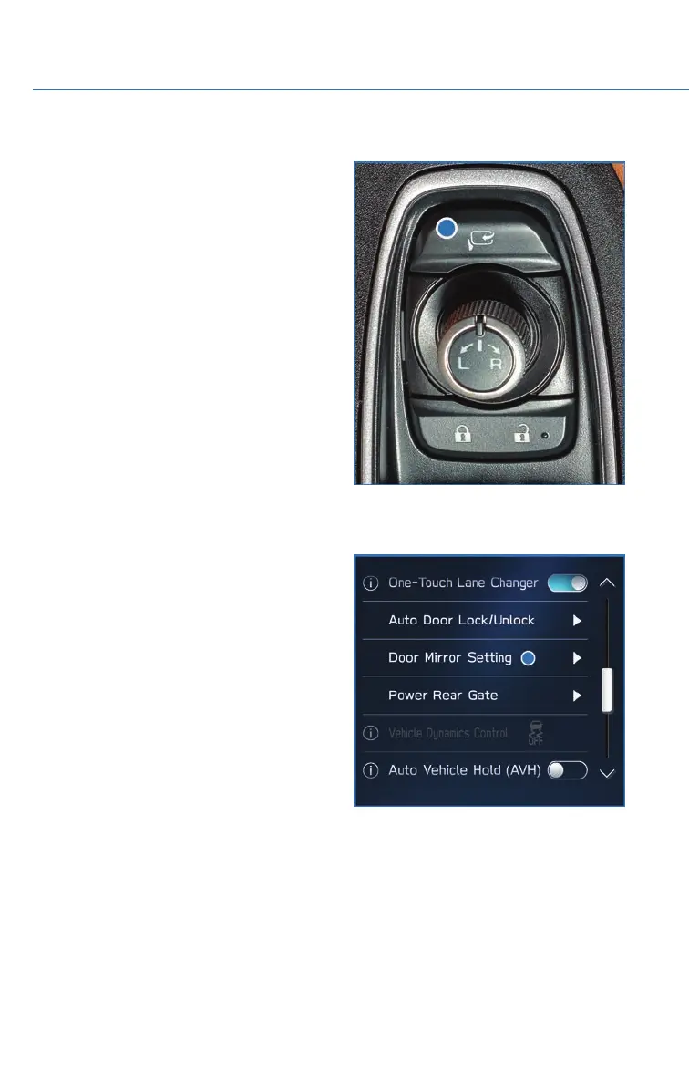 Touchscreen start by selecting “Home”. Then “Settings” then “Car” and finally “Door Mirror