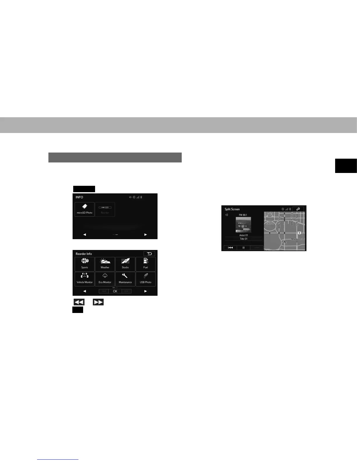 such as the audio system screen and hands-free screen,