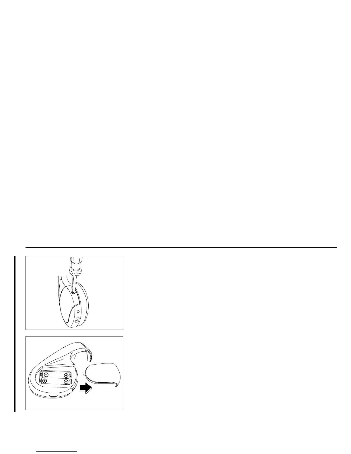 Remove the battery cover on the left earpiece by loosening the screw with a flat-
