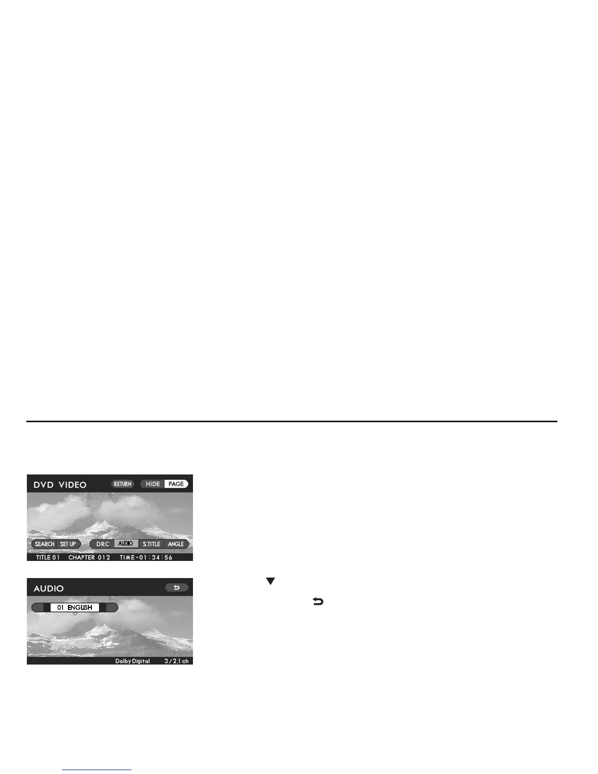 press the “ENTER” button. The display will switch to the audio language selection