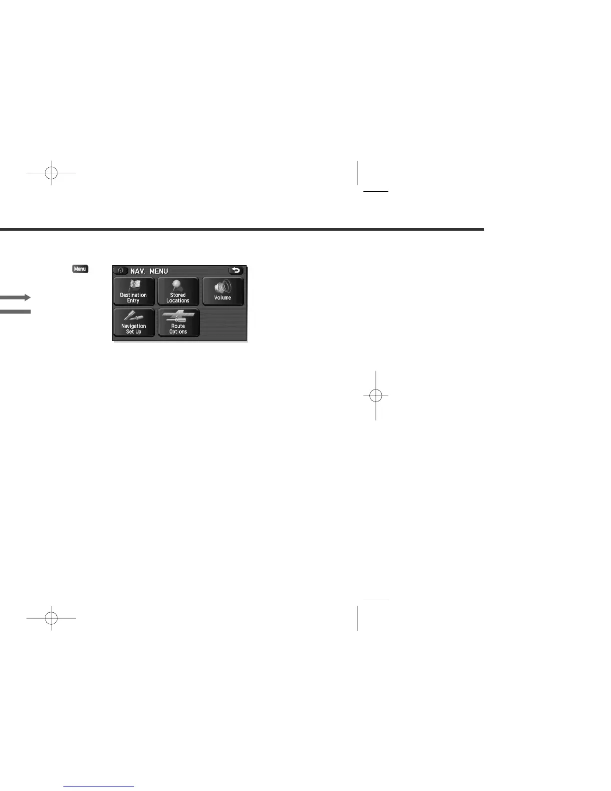 The table below shows the keys displayed on the navigation menu (NAV. MENU) screen, the functions