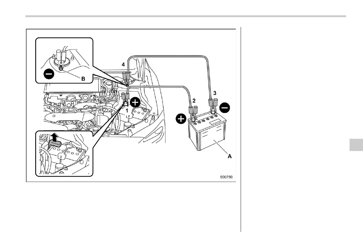 (1) Connect one jumper cable to the
