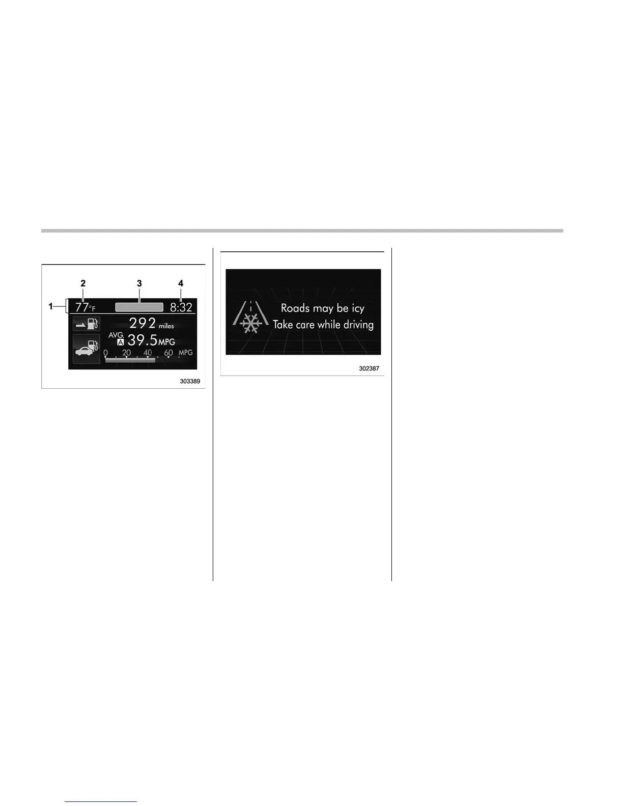 . The icy road surface warning screen