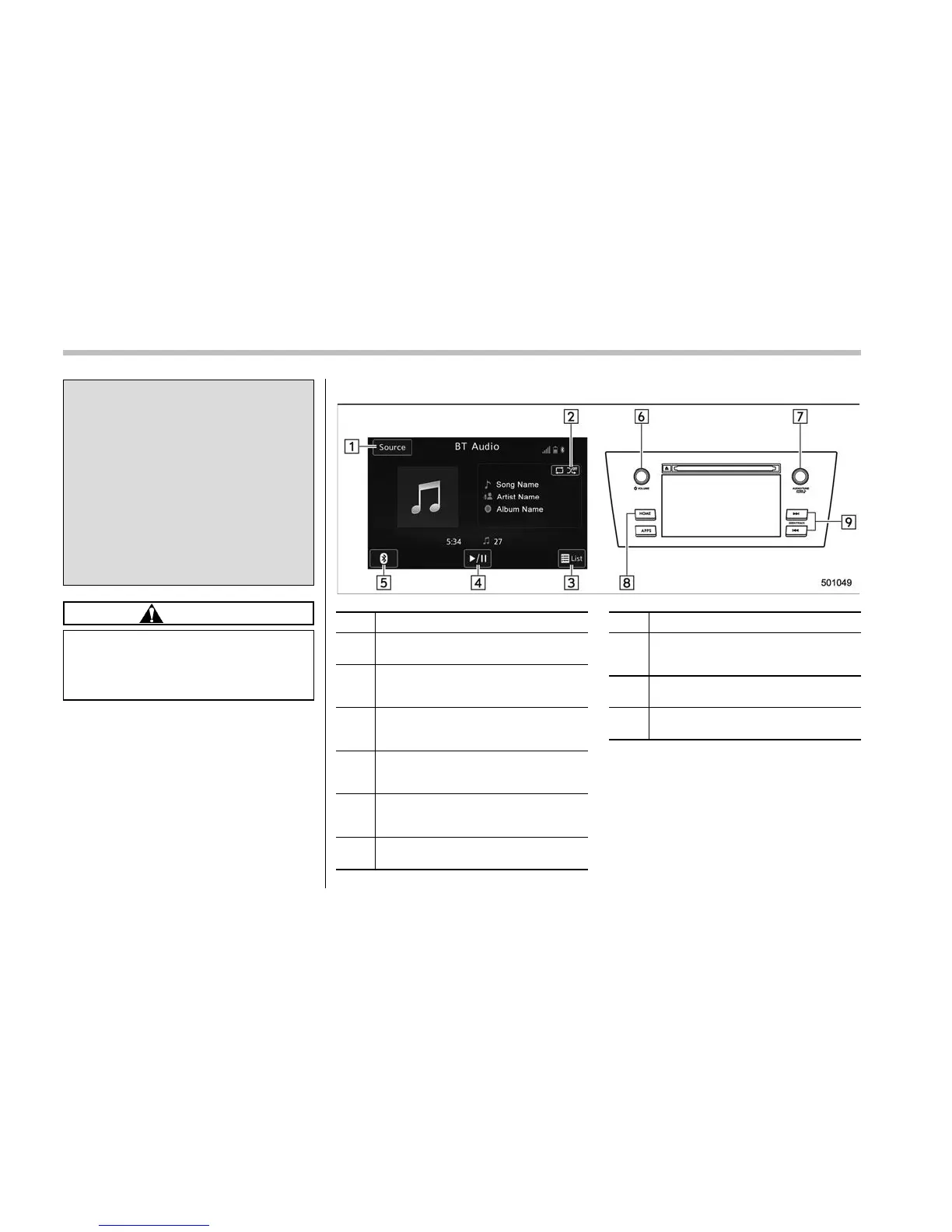 Press to select an audio source. Refer
