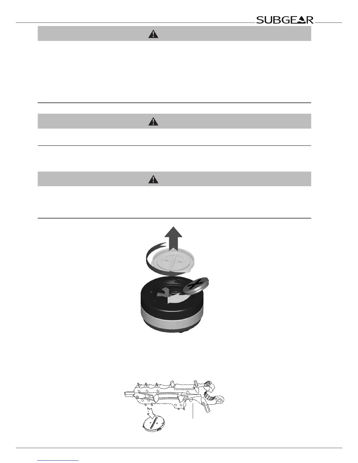 To replace the battery you need a coin or the SUBGEAR universal tool and a clean cloth.