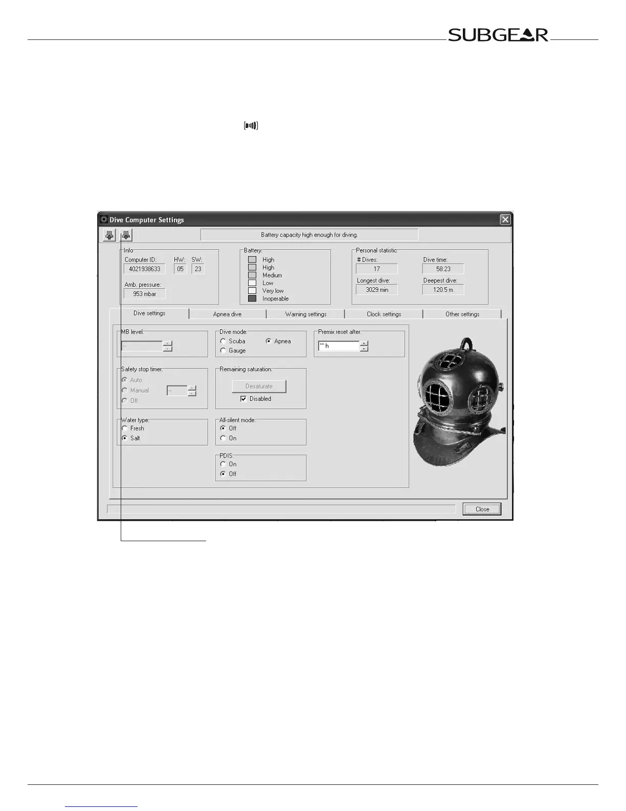 With Dive.Log you can configure Subgear XP-3G, transfer dive data to a personal computer