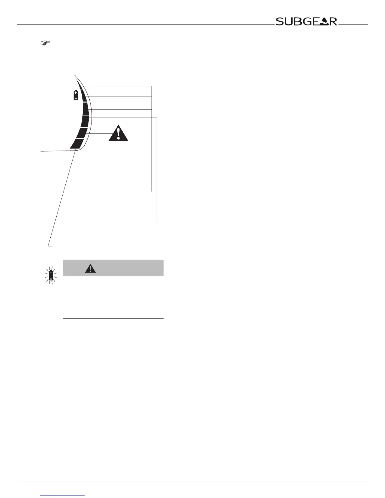 Subgear XP-3G marks dives started with 3 or less segments in the logbook with the battery symbol.