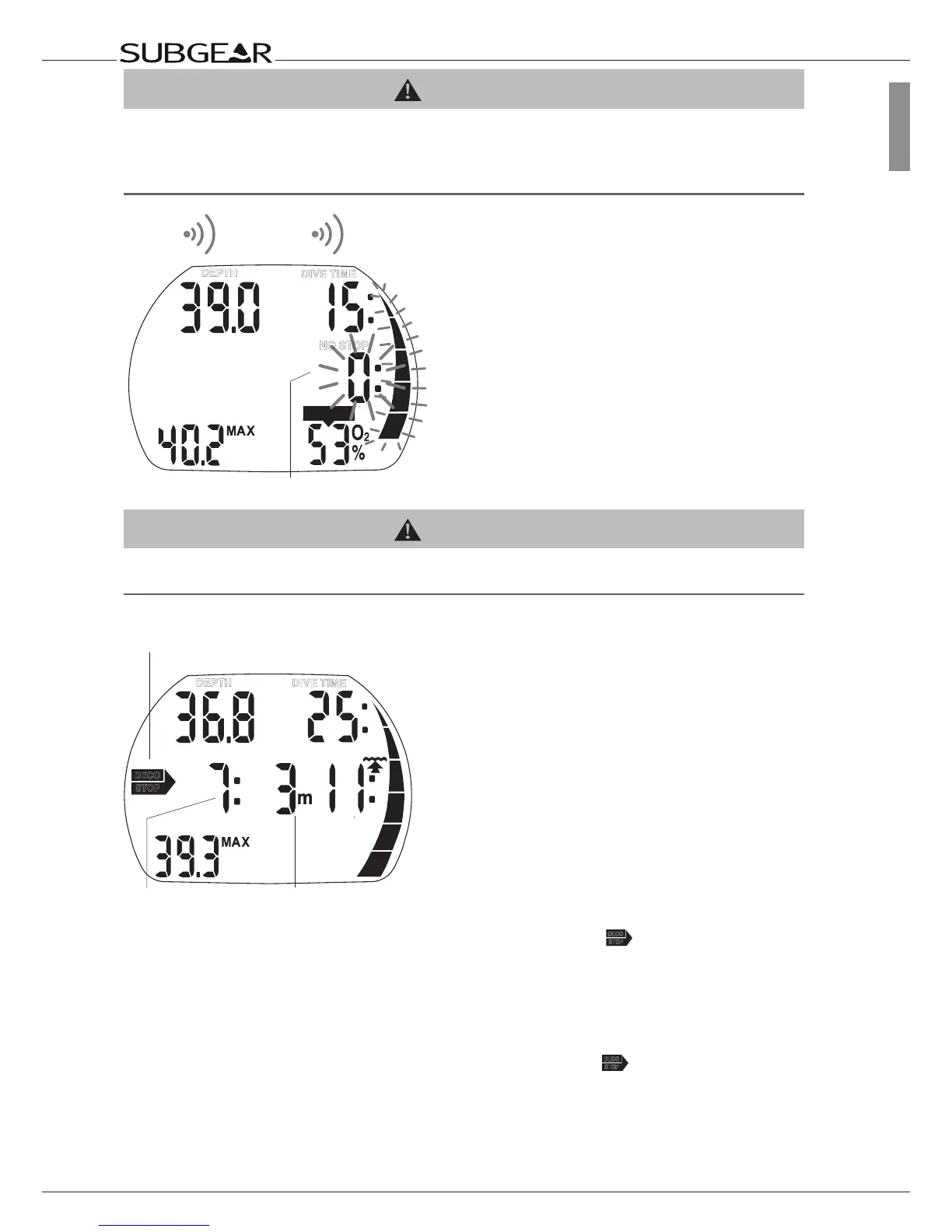 On entering the decompression phase, “NO STOP” disappears, the