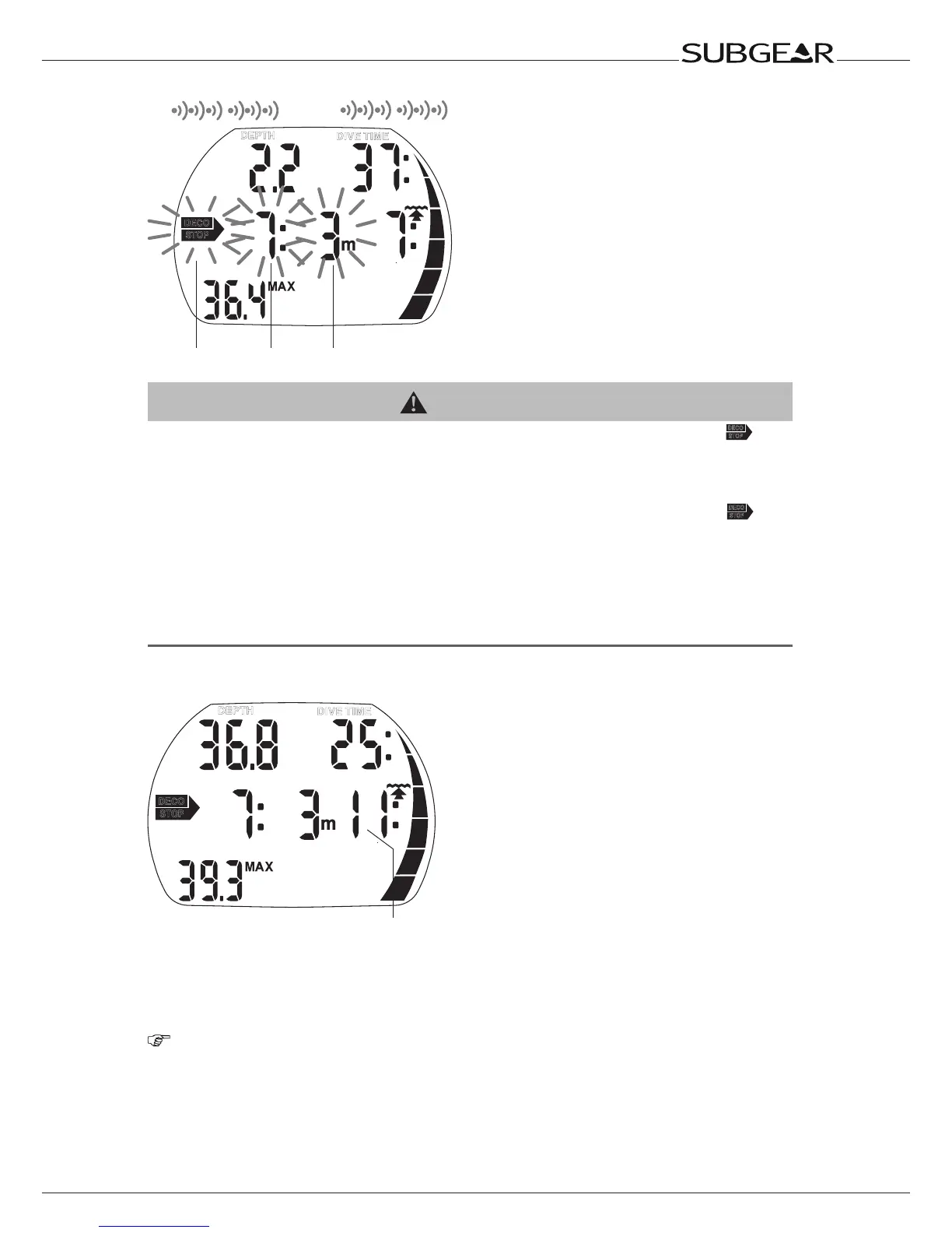 decompression stop duration and decompression stop depth begin to ash and an audible alarm