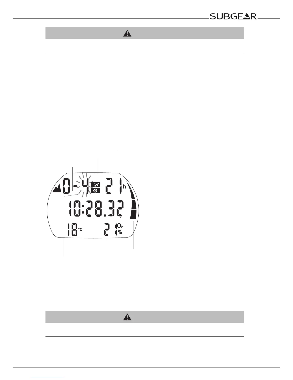 5 minutes after a dive Subgear XP-3G shows the time of day, the “do not fly time”, the