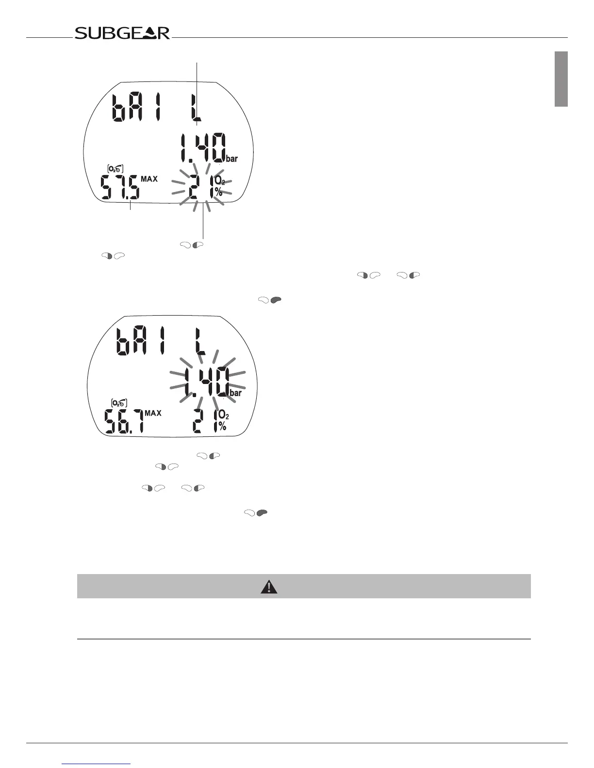 3. Change the oxygen fraction in increments of 1% by pushing or . Subgear XP-3G will