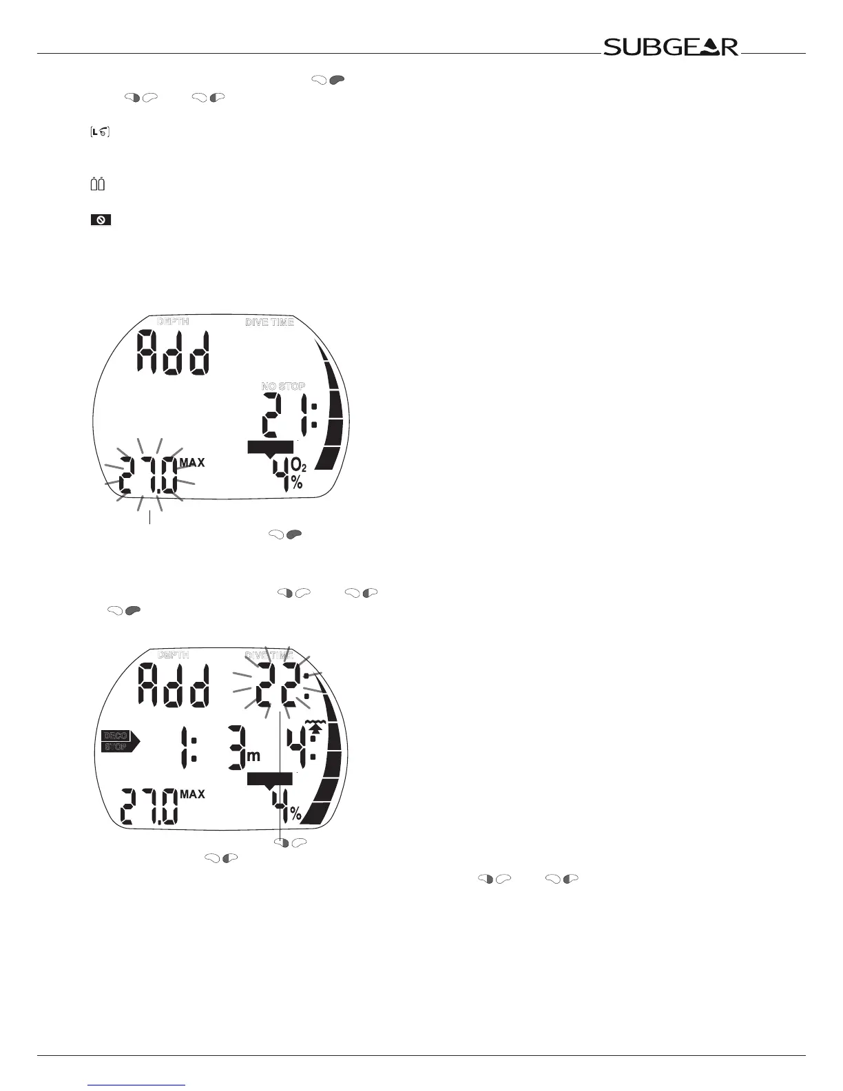 3. “Add” asks that you set the bottom time. This is done with and . Subgear XP-3G