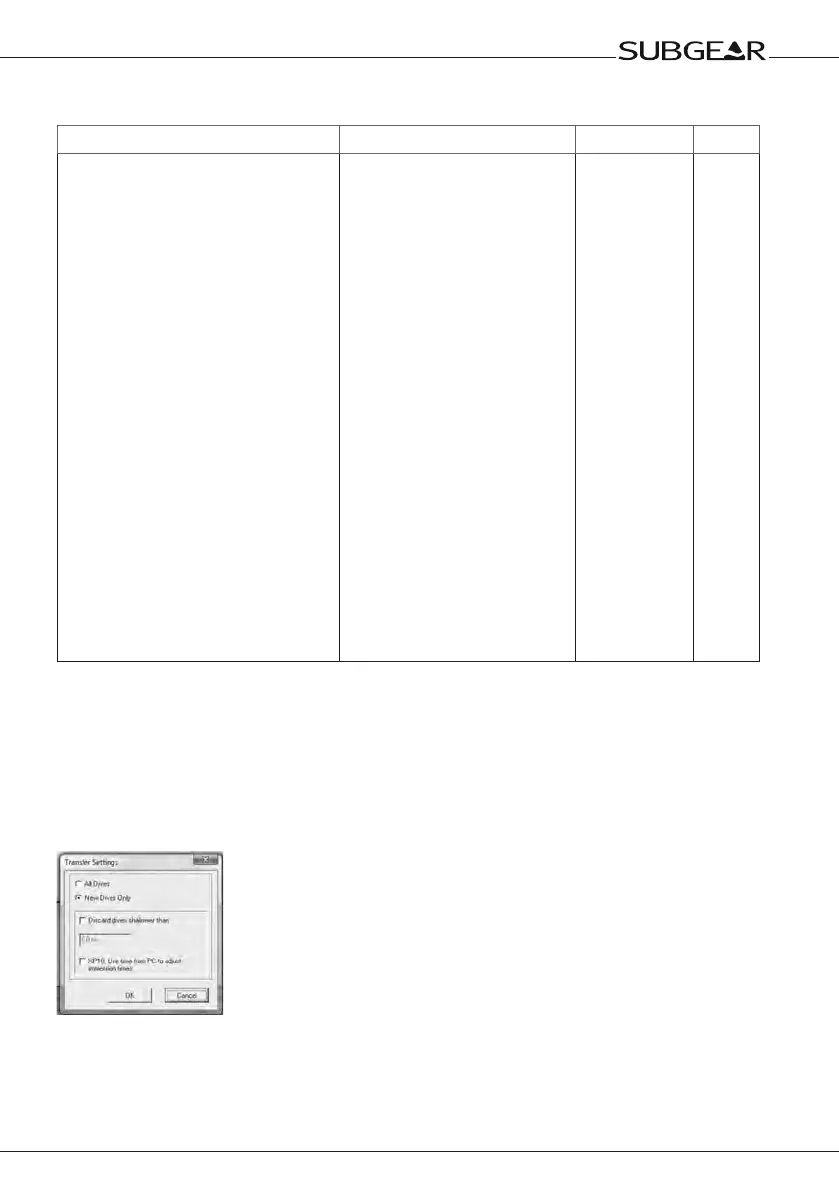 setting) from Subgear XP-3H’s memory. If you choose to transfer new dives
