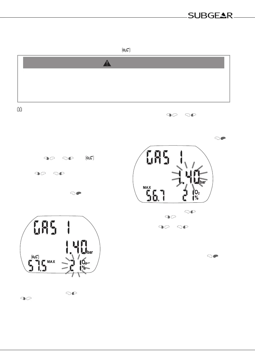 Before every dive and after changing the tank, make sure that the settings for the gas mixture
