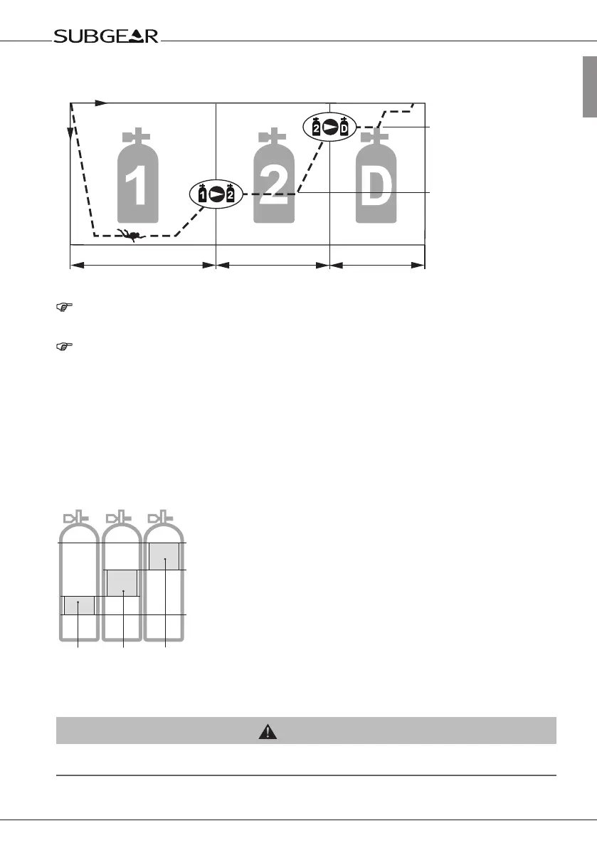 contains the bottom mix (gas 1), tank 2 the travel mix and tank d contains the deco mix (gas d).