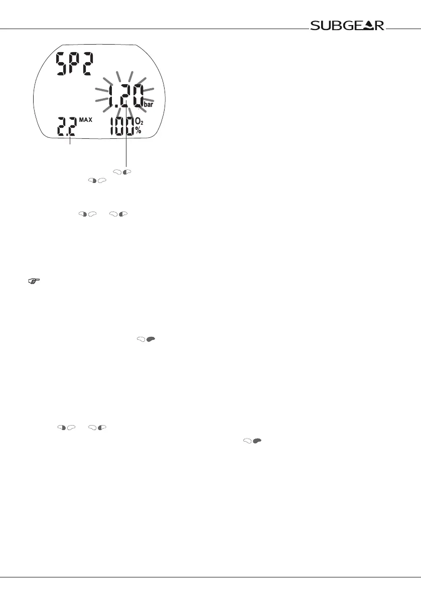 To set the Bail-Out gas mixture, Subgear XP-3H must be in user mode (time of day display).