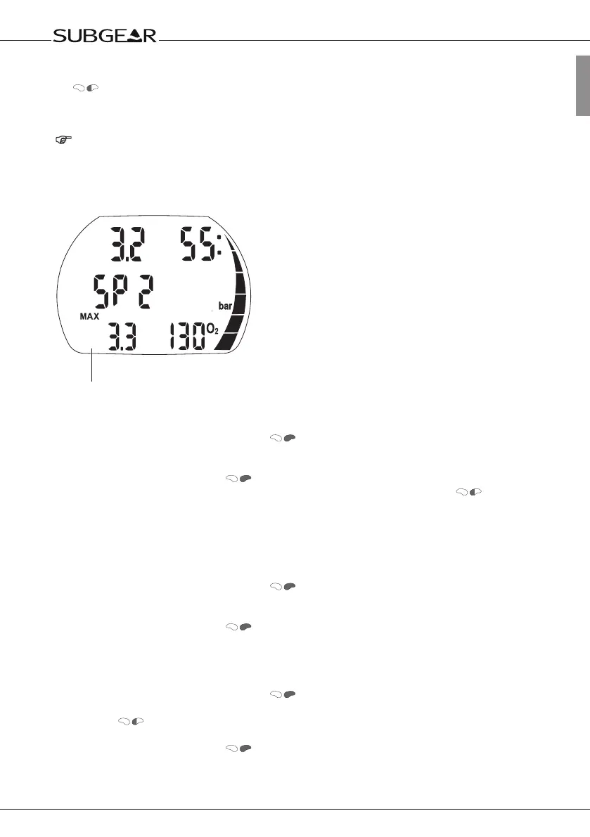 2x , Subgear XP-3H displays “SP2”, the MOD and the ppO2 for 5 seconds. Subgear XP-3H