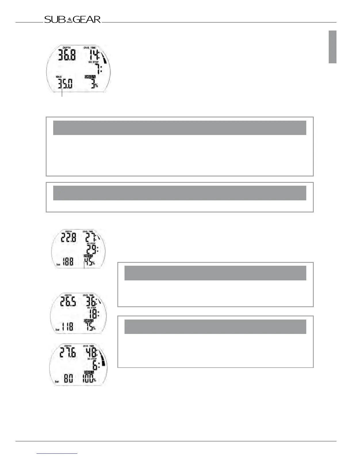 • During the ascent, the display of the oxygen toxicity is replaced