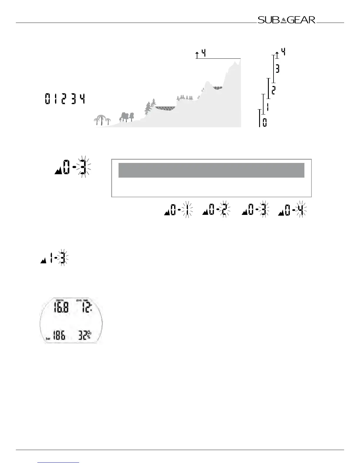 4100m / 13450ft above sea level), no decompression data is calculated and