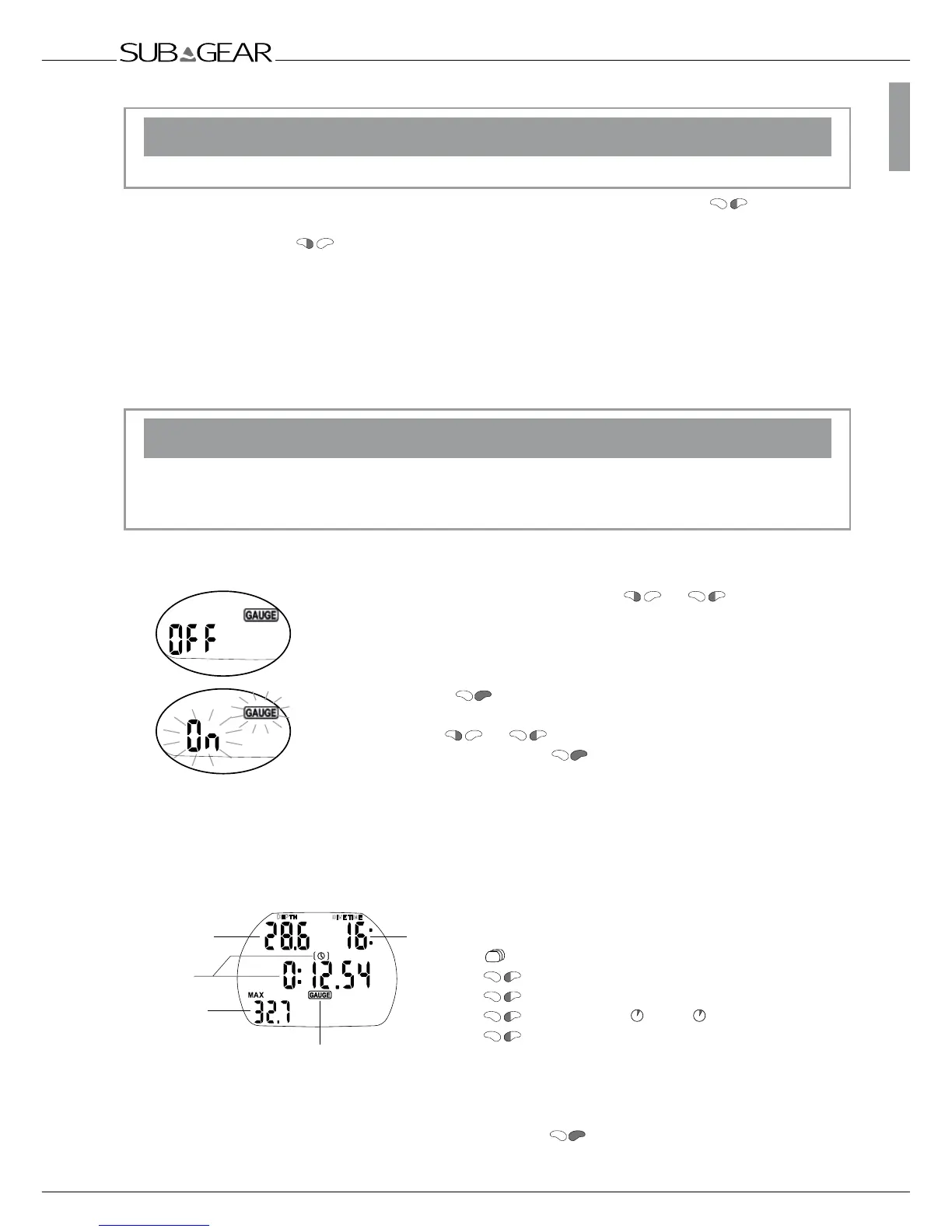 • After diving in gauge mode you must wait for at least 48 hours before using a decompression